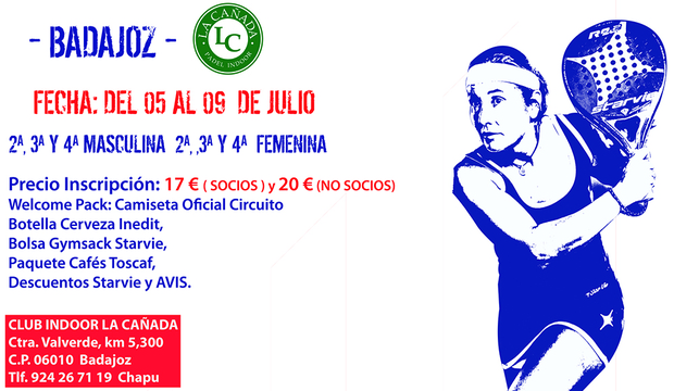 Desde este miércoles y hasta el domingo 9 de julio, el Club Pádel Indoor La Cañada (Badajoz) acoge la celebración de una nueva prueba del II Circuito Fundación Atlético de Madrid de pádel, cuya recaudación de inscripciones se destinará a la investigación contra el cáncer a través de la Fundación Intheos.