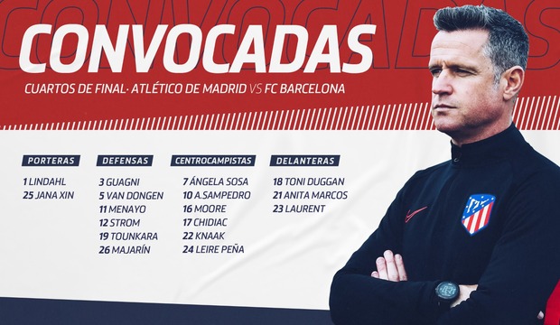 Dani González ha convocado a 17 jugadoras para el enfrentamiento de este viernes (18:00 horas en San Mamés) contra el FC Barcelona, correspondiente a los cuartos de final de la UEFA Women’s Champions League. El técnico madrileño ha convocado a todas las futbolistas disponibles del primer equipo y a las tres del filial que están inscritas en la máxima competición continental.