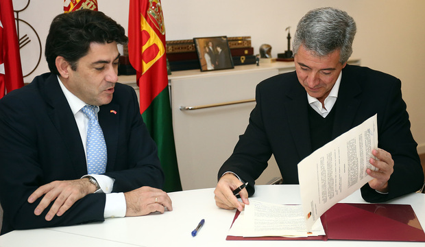 Miguel Ángel Gil, consejero delegado del club, y David Pérez, alcalde de la localidad madrileña, rubricaron el acuerdo mediante el cual se procederá a construir la nueva sede de nuestra Academia.