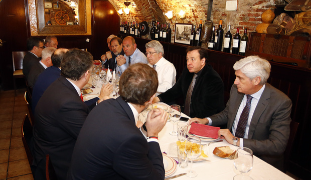 Enrique Cerezo ejerció de anfitrión con la directiva del conjunto sevillista que encabezó José Castro