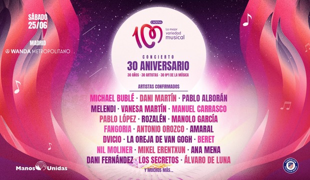 El Wanda Metropolitano acogerá este sábado 25 de junio un concierto que conmemorará el trigésimo cumpleaños de Cadena 100.