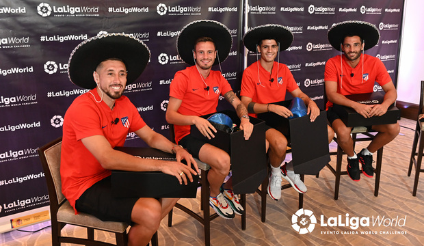 Nuestros jugadores Héctor Herrera, Saúl Ñíguez, Álvaro Morata y Antonio Adán atendieron a los medios de comunicación que se dieron cita en el evento organizado por LaLiga para presentar el partido amistoso que disputaremos este sábado en México ante el Atlético de San Luis.