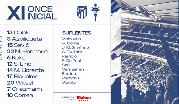 Ya conocemos las alineaciones titulares para el Atleti-Celta