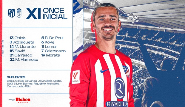 Ya conocemos las alineaciones titulares para el Atleti-Granada