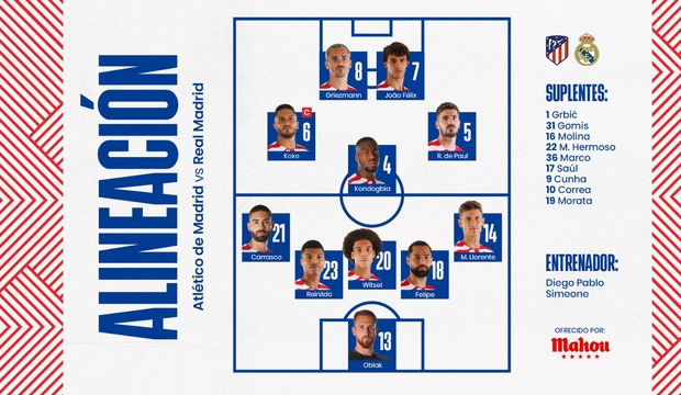 Ya conocemos las alineaciones titulares para el Atleti-Real Madrid