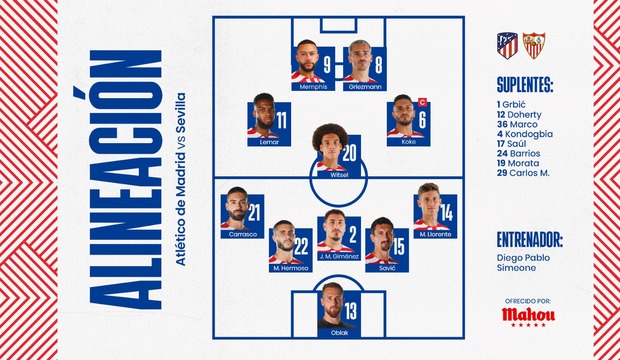 Ya conocemos las alineaciones titulares para el Atleti-Sevilla