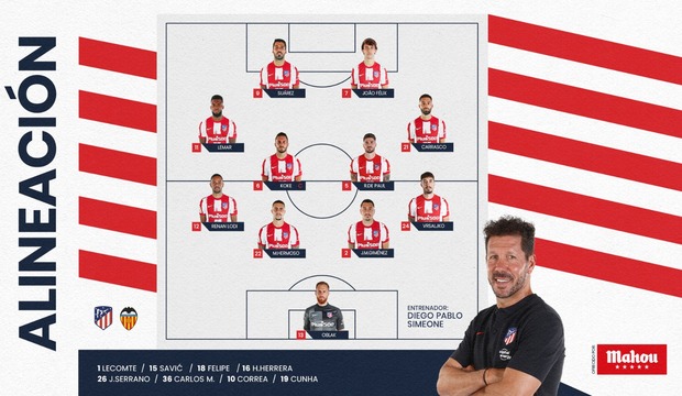 Ya conocemos las alineaciones titulares para el Atleti-Valencia