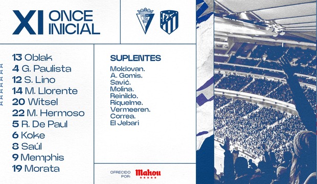 - Once del Atlético de Madrid: Oblak, Llorente, Witsel, Paulista, Hermoso, Lino, Koke, De Paul, Saúl, Memphis y Morata.