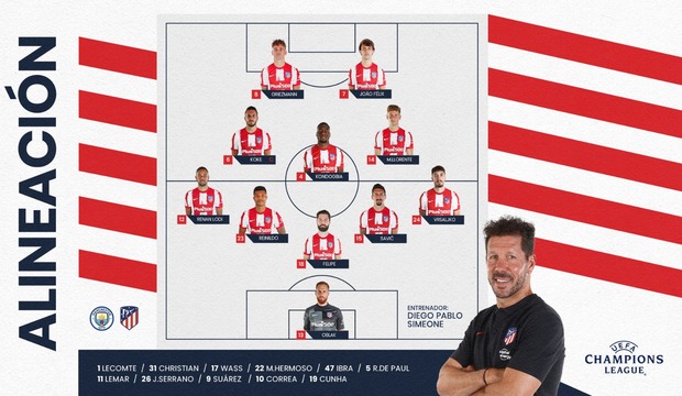 Ya conocemos las alineaciones titulares para el Manchester City-Atleti