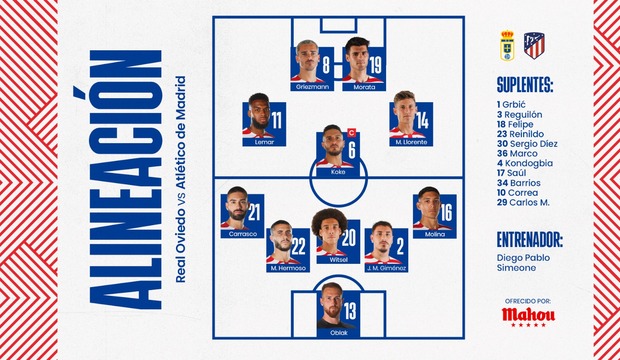 Ya conocemos las alineaciones titulares para el Real Oviedo-Atleti