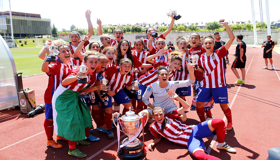 ¡Campeonas de Copa! El Atlético de Madrid Féminas se ha proclamado campeón de la Copa de la Reina por primera vez en la historia del club. Nuestras chicas se impusieron al FC Barcelona en la final por 2-3, gracias a los goles de Sosa, Meseguer y Esther.
