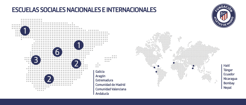 Las escuelas sociales son la principal actividad sociodeportiva de la Fundación. El fútbol se convierte en la herramienta integradora, motivadora y de transmisión de valores.