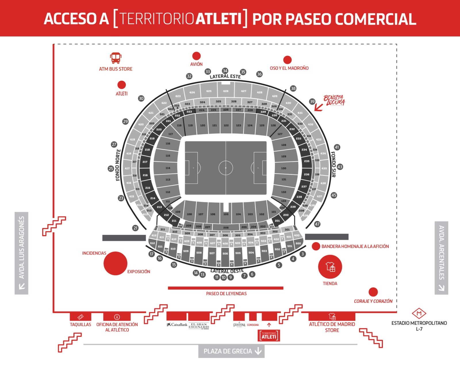 El último acceso al tour del estadio (exceptuando días de partido o eventos) será 2h antes del cierre de Atleti Tour & Museum.