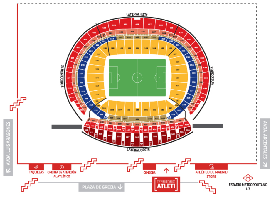 *Desde el 2 de junio y hasta el 12 de agosto el terreno de juego estará sin césped debido a los diferentes eventos en el estadio.