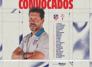 Diego Pablo Simeone cita a 24 jugadores para el encuentro liguero ante el RC Celta.