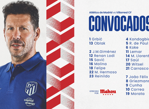 Nuestro entrenador convoca a toda la plantilla para el duelo de este domingo en el Cívitas Metropolitano ante el Villarreal CF.
