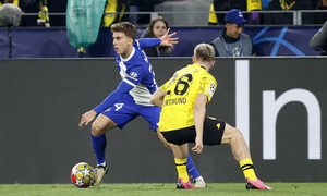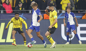 Un gran tanto del argentino que levantaría a los más de 4000 aficionados rojiblancos desplazados a Dortmund. /Ángel Gutiérrez