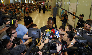 Nuestro jugador atendió a los medios de comunicación en el mismo aeropuerto./ Foto: Ángel Gutiérrez