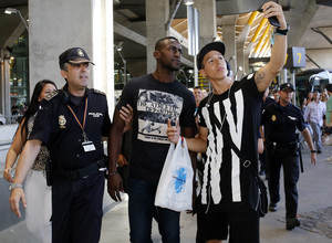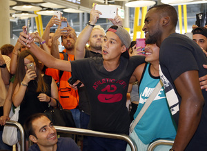 El delantero colombiano continuó haciéndose fotos a la salida de la terminal del aeropuerto./ Foto: Ángel Gutiérrez