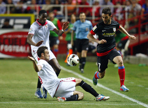 Adrián López sustituyó a Diego Costa en el minuto 67 y de sus botas partió la jugada que terminó en el gol de Falcao ocho minutos después. El asturiano se mostraba feliz por el importante triunfo del equipo en Sevilla.