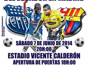 El próximo 7 de Junio a las 20:00 horas, amistoso entre los equipos ecuatorianos Barcelona Sporting Club y el Club Sport Emelec en el Estadio Vicente Calderón.