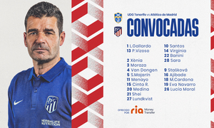 Manolo Cano ha citado a 20 futbolistas para jugar contra el conjunto tinerfeño en el encuentro correspondiente a la decimocuarta jornada liguera. Se quedan fuera por lesión Maitane, Ludmila, Irene Guerrero, Barth y Bárbara. Entra en la convocatoria Sara, del filial.