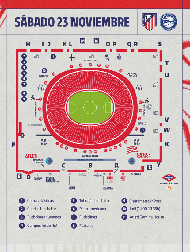 Descubre todas las actividades que hemos preparado para ti este sábado, con el Atleti-Alavés de las 16:15 h. como punto culminante.
