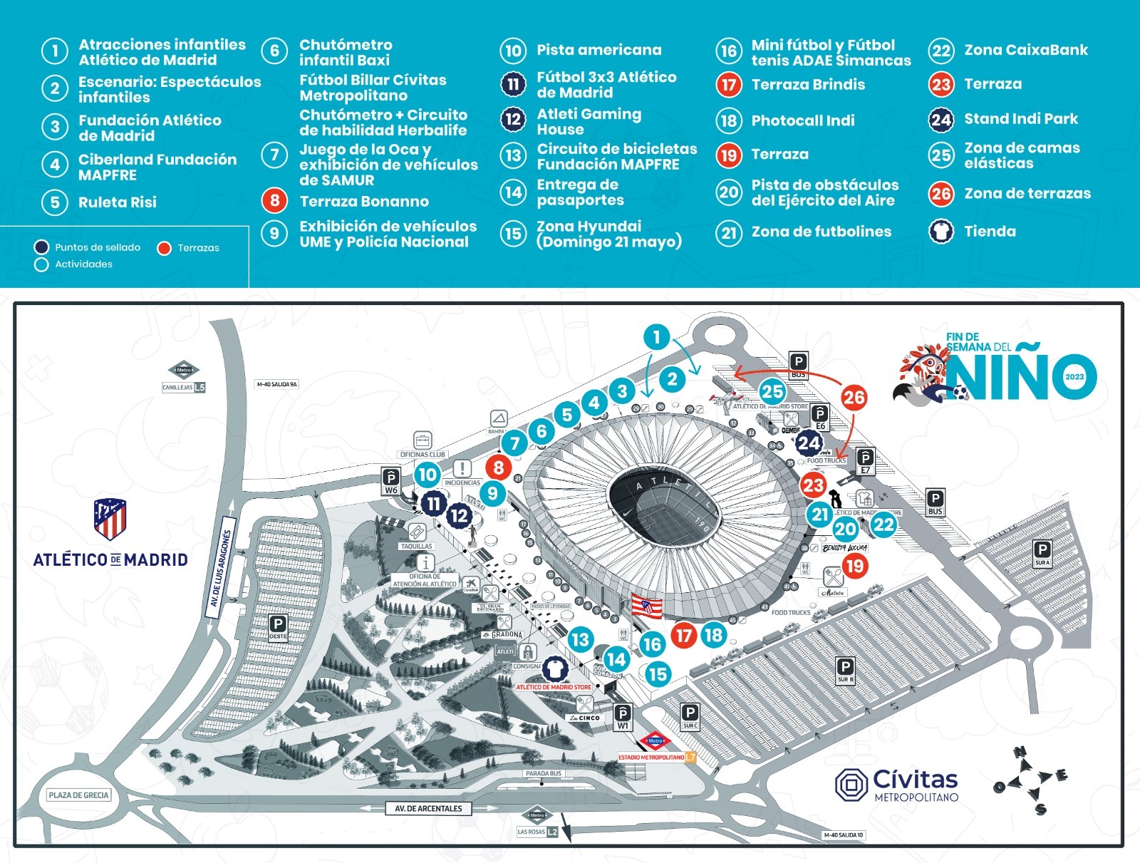 El Fin de Semana del Niño regresa una temporada más y lo hace con más fuerza que nunca. El sábado 20 y el domingo 21 de mayo, de 10:00 a 20:00 horas ambos días, el Cívitas Metropolitano y sus alrededores albergan una nueva edición de este gran evento, donde los más pequeños vuelven a ser los protagonistas.