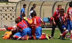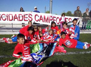 El Atlético de Madrid Alevín conquistó la Liga en la última jornada tras la goleada al San Agustín de Guadalix (8-0). Los goles de Sergio (2), Diego (2), Bryan (2), Jesús y Gonzalo rubricaron un triunfo con el que los discípulos de Roberto Miguélez ponían broche de oro a una gran temporada en la que terminaron invictos, con 23 victorias y 3 empates. Los nuestros han marcado 81 goles a favor sólo han recibido 4 en toda la campaña. ¡Enhorabuena chavales!