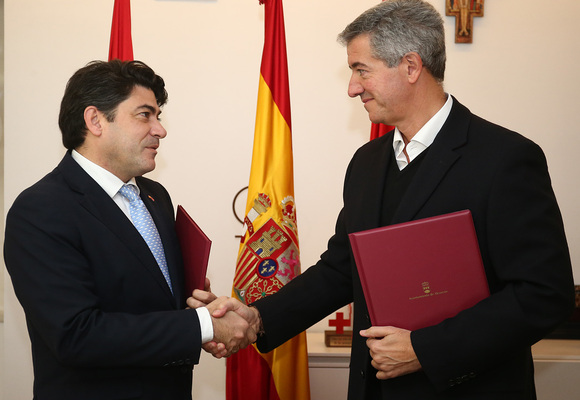 Miguel Ángel Gil, consejero delegado del club, y David Pérez, alcalde de la localidad madrileña, rubricaron el acuerdo mediante el cual se procederá a construir la nueva sede de nuestra Academia.