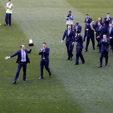 El equipo al completo, encabezado por su capitán José Javier Hombrados, dio una vuelta de honor alrededor del campo para sentir de cerca el aliento y el empuje de la que sigue siendo la mejor afición del mundo.
