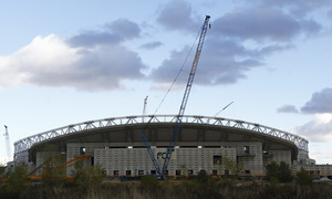 La obra del Wanda Metropolitano afronta un momento clave: El izado de los anillos de tracción que delimitarán el óvalo de la cubierta sobre el terreno de juego.