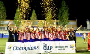 El Atlético de Madrid Liga Nacional se ha proclamado campeón del torneo The Cup 2017. Nuestro equipo finalizaba en primera posición la fase de grupos después de vencer los tres partidos disputados: Girona (0-5), Valencia (0-3) y FC Barcelona (1-3). Tras concluir primero de grupo, nuestro equipo se clasificaba para disputar la final ante el Real Madrid. Cedric abría el marcador en el minuto 3 de partido. Antes del descanso, Víctor Mollejo y un minuto después Sergio Camello conseguían dos nuevos goles para los rojiblancos que dejaban el marcador al descanso con el 3-0, resultado que ya no se movería más. Además, Víctor Mollejo fue elegido mejor jugador del campeonato.