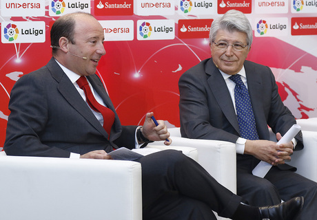 Nuestro presidente Enrique Cerezo estuvo acompañado en el acto de presentación por Javier Tebas, presidente de LaLiga, Juan Manuel Cendoya, del Banco Santander, y Susana García Espinel, directora general de Universia España.