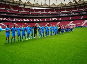 Por segundo año consecutivo, el césped del Wanda Metropolitano acogió a los amigos de Movistar para celebrar un partido en el que el jugador del Atlético de Madrid Movistar Riders, Andoni Payo, fue capitán.