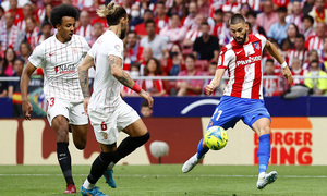 El Sevilla llegó a este partido buscando un punto que le diera la clasificación directa para Champions y se vio agobiado por el Atlético durante los primeros 20 minutos. Los nervionenses buscaban salir al contragolpe para intentar sorprender, como sucedió en el minuto 23, cuando En-Nesyri recibió un pase en profundidad pero su disparo salió desviado. Era el primer acercamiento de los andaluces en el partido.