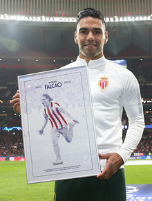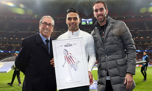 Radamel Falcao vivió un emotivo homenaje en el Wanda Metropolitano en su regreso a Madrid para disputar el partido correspondiente a la quinta jornada de la Liga de Campeones que enfrentó a nuestro equipo con el AS Mónaco. El delantero colombiano recibió de manos de Adelardo y Godín un cuadro en recuerdo de las dos temporadas que vivió en nuestro club.