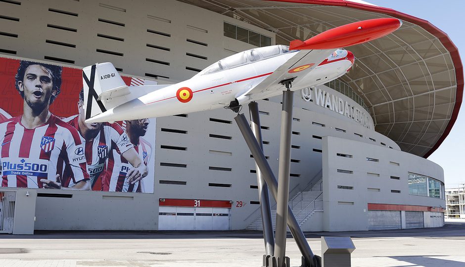 Además, se instaló un avión donado por el Ejército del Aire en recuerdo al Atlético Aviación. Fue el 4 de octubre de 1939 cuando se produce la fusión entre los equipos del Aviación Nacional y del Athletic Club de Madrid, dando lugar primeramente al Athletic-Aviación Club (de 1939 a 1941), que posteriormente pasó a denominarse Club Atlético Aviación (de 1941 a 1946).