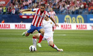 Quedaban 15 minutos para cerrar la temporada en el Calderón y el Atlético buscaba la guinda a su excepcional temporada. Falcao estuvo cerca de encontrarla cuando Diego Costa le servía un balón para plantarse ante Aouate pero el colombiano no estuvo acertado en una suerte que domina como la del uno contra uno. Todos los jugadores buscaban el gol y se incorporaban desde atrás como en el caso de Mario que tuvo en su cabeza la oportunidad a 10 minutos del final.