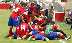 Atlético de Madrid: San Román, Solano, Theo, Montoro, Alberto, Caio, Juan Moreno, Keidi, Salomón, Toni Moya y Zaka.