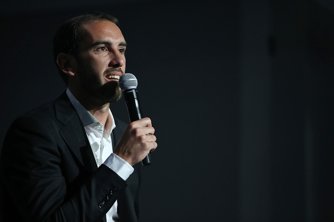 El central uruguayo expresó en el comienzo del acto: "Son mis últimos días y partidos en el Atlético de Madrid. Quería comunicárselo, que lo supieran de mi boca por el cariño que tengo a este club y a esta camiseta, porque soy un hincha más, por el cariño de la afición. No es solo un club para mí. Ha sido mi familia, mi club, y es muy difícil despedirse de casa. Han sido años en los que he disfrutado muchísimo y quería agradecerles a compañeros. He crecido como persona. Mis padres me educaron con los mejores valores y los he intentado transmitir tanto dentro como fuera del campo: humildad, sacrificio y respeto".
