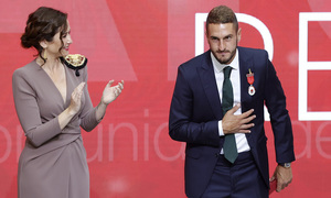 En el marco del evento de condecoraciones de la Orden del Dos de Mayo, celebrado en la Real Casa de Correos en el día de la festividad regional de Madrid, el centrocampista vallecano recibió su reconocimiento de manos de Isabel Díaz Ayuso, presidenta de la Comunidad de Madrid.