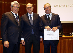 La Fundación Atlético de Madrid ha sido premiada con la Medalla de Oro al Mérito Social Penitenciario por la realización de servicios de extraordinaria relevancia y el apoyo en la mejora de la actividad penitenciaria. El premio ha sido otorgado por la Administración Penitenciaria con motivo de la festividad de La Merced. El acto, que tuvo lugar en el Salón de Actos del Ministerio de Sanidad, Servicios Sociales e Igualdad, contó con la presencia de Enrique Cerezo y el Ministro del Interior, Jorge Fernández Díaz. Nuestro presidente recibió la medalla de manos del propio ministro.