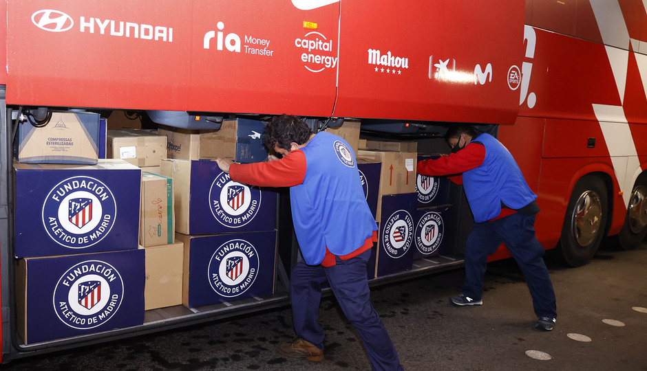 Este lunes 21 de marzo, un autobús fletado por la Fundación Atlético de Madrid y la Comunidad de Madrid puso rumbo a Varsovia cargado de ayuda humanitaria destinada a familias que están sufriendo las consecuencias del conflicto bélico que está teniendo lugar en Ucrania y provocando millones de desplazados. La llegada del autobús del primer equipo a la capital polaca está prevista para el miércoles 23. Una vez allí se procederá a entregar el material de primera necesidad y se recogerá a una treintena de refugiados, que viajarán hasta Madrid y serán recibidos en Madrid el próximo viernes.