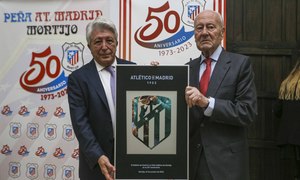 La pacense Peña Atléticade Montijo festejó este viernes 27 de octubre su quincuagésimo cumpleaños, en un acto celebrado en Bardaño (Badajoz) y al cual acudieron nuestro presidente, Enrique Cerezo, y las leyendas rojiblancas Ramón 'Cacho' Heredia y Luiz Pereira.