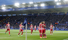 Nuestro tercer enfrentamiento en fases eliminatorias europeas ante el Leicester City tuvo lugar en la temporada 16/17. Un gol de Griezmann desde los once metros en el encuentro de ida nos permitió viajar a Inglaterra con una ventaja que, tras el 1-1 cosechado en el King Power Stadium, sirvió para que alcanzásemos las semifinales de la Liga de Campeones.