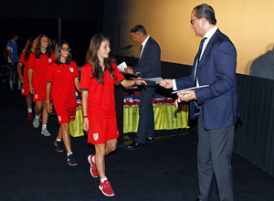Las jugadoras premiadas recogieron sus galardones durante la XV Gala de final de temporada del Atlético de Madrid Féminas.