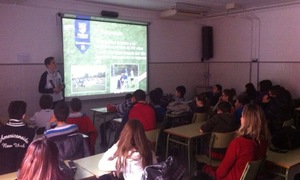 La presidenta del Atlético de Madrid Féminas impartió una conferencia a alumnos entre 12 y 14 años para fomentar la escuela de Fútbol Sala del Atlético de Madrid Féminas en Entrevías.