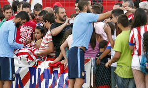 La sesión de tarde del viernes 18 fue una fiesta rojiblanca en el campo de fútbol de Los Ángeles de San Rafael. Unos 500 aficionados se dieron cita para agasajar a sus ídolos y aprovechando que estaban los dos fichajes rojiblancos, Mandzukic y Oblak. El croata y el esloveno recibieron su bautismo como rojiblancos y pudieron comprobar el cariño de la afición en su primer día de entrenamiento.