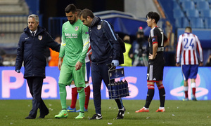 Miguel Ángel Moyá tuvo que ser sustituido en el minuto 23’ del encuentro frente al Bayer Leverkusen por Oblak tras sentir unas molestias en el muslo izquierdo.